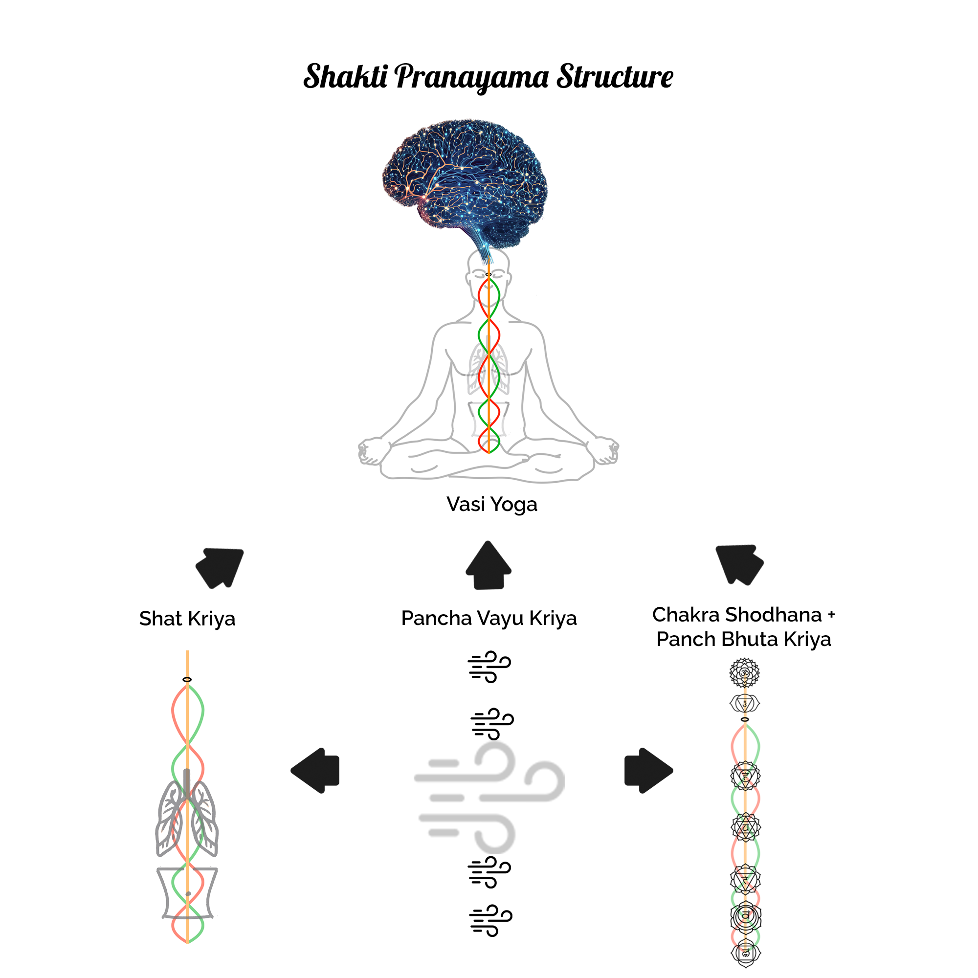 Through years of study, I’ve distilled the most effective techniques to prepare and accelerate a practitioner’s progress in Vasi Yoga. I call this sequence of breathing techniques Shakti Pranayama. This method integrates select asanas, breathwork (pranayama), sensory withdrawal (pratyahara), and concentrated Vasi Yoga breathing rhythms (dharana) into a structured sequence.